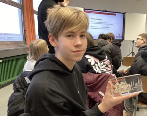 Zum Abschluss zeigte er noch ein Produkt aus seiner Firma und erklärte den Weg vom Produkt zum Kunden.